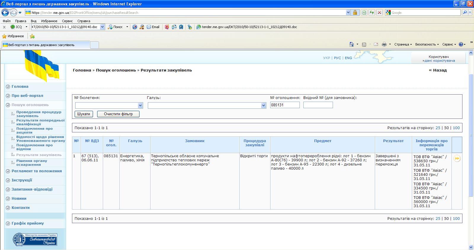 (додано оригінал оголошення про закупівлю палива в Тернополі)