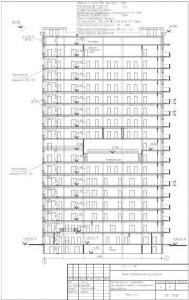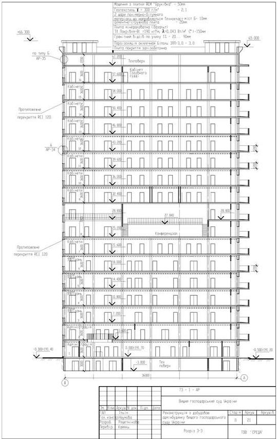 «Домінуюча будівля адмінбудинку суду заввишки 16 поверхів розташована праворуч від головного входу, зліва розташована будівля паркінгу, між ними розміщено перехід, який формує вхідну частину до всіх складових частин комплексу будівель суду. Нарівні перших двох поверхів по периметру прибудови головним об’єднуючим елементом виступає колонада, що прикрашає головний фасад будівель», – описується загальний проект (нижче зображено вигляд нового будинку у розрізі).