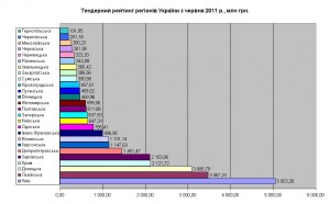 В загальному рейтингу (починаючи з червня), попереду всіх вступають області, які готуються до прийняття Євро-2012: Київ (5,05 млрд грн.), Львівська (3,46 млрд грн.), Донецька (3,08 млрд грн.). Трохи вперед вийшов Крим (2,12 млрд грн.), який наздоганяють Харківська (2,10 млрд грн.) та Дніпропетровська області (1,45 млрд грн.).