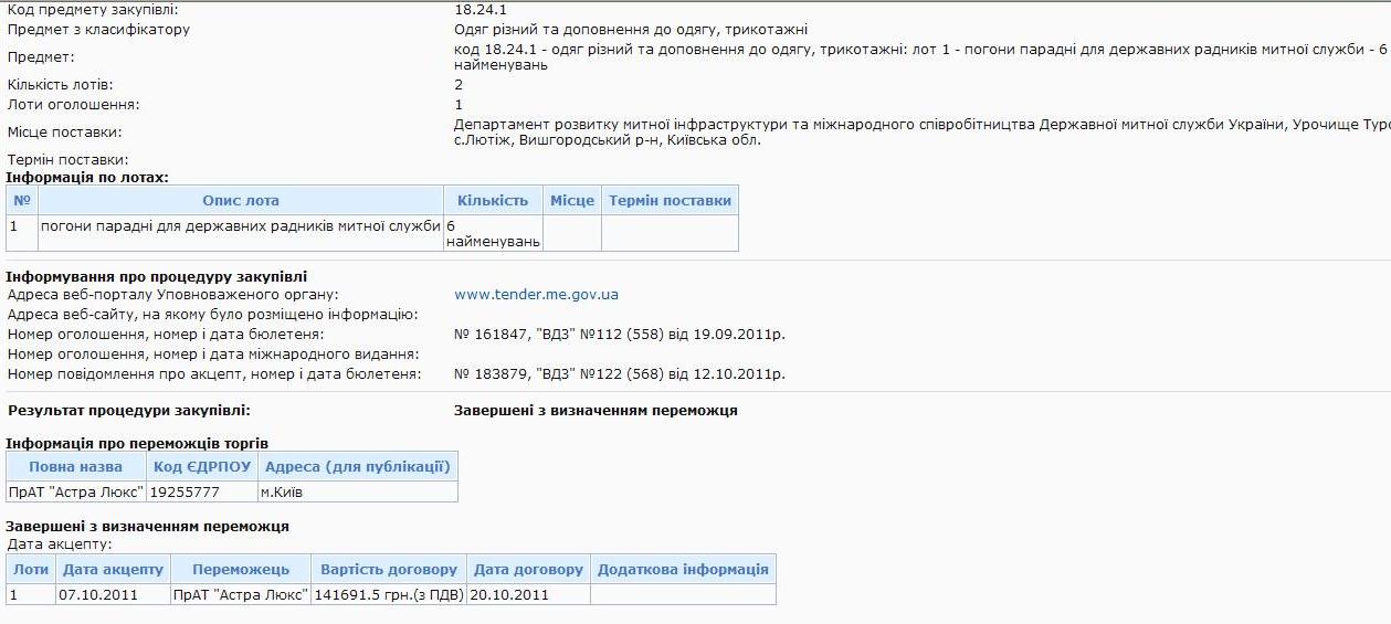 Із кількістю закуплених погонів можна ознайомитись тут (лот N 1).