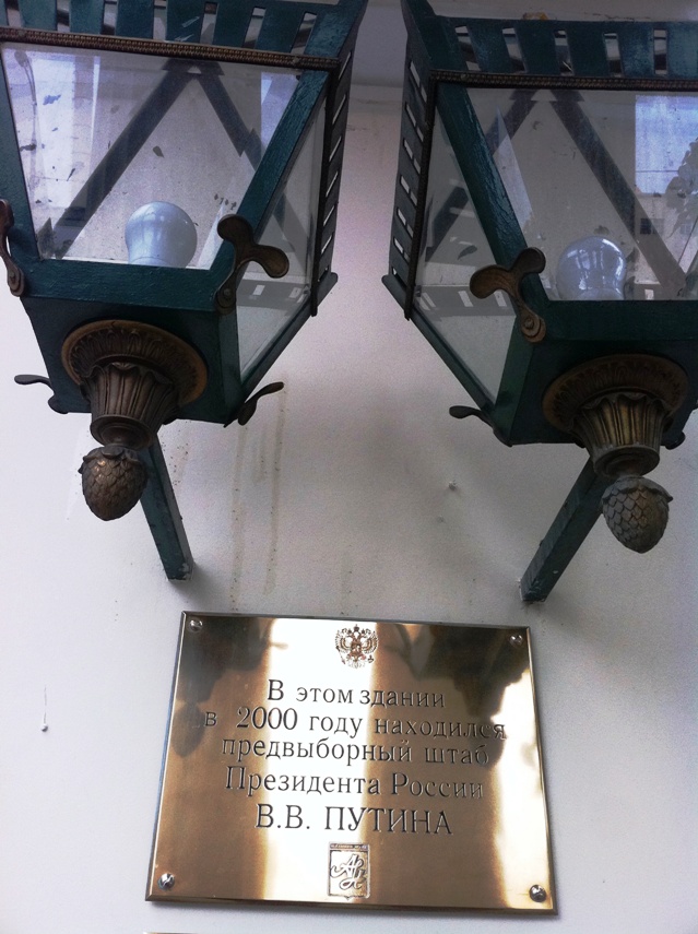 То были досрочные выборы после отставки Ельцина, которые Путин выиграл у Зюганова с результатом 53 на 29%. После этого на офисное здание в центре Москвы повесили мемориальную табличку под золото. Все таки веха в истории. Заслужит ли Путин нечто подобное и в этот раз? Фото Ганни Калини.