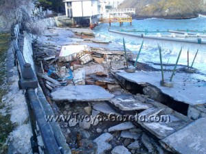 Тоді на побережжі Криму пройшов потужний шторм. Стихія зруйнувала забетоновану частину набережної військового санаторію (на фото), два медпункти та господарський будиночок. Як повідомив тоді місцевим ЗМІ в.о. начальника санаторію Сергій Білоус приблизні збитки від шторму склали 4 млн грн.