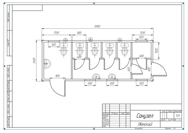 Туалети мають великі розміри і розраховані на одночасне відвідування 5-10 особами (на фото креслення найменшого туалету).