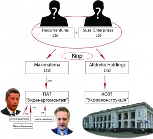 Кіпрська компанія «Максімалема лімітед» (Maximalema Limited), що володіє чвертю акцій ПрАТ КП «Укренергомонтаж», має тих самих засновників, що і кіпрська компанія «Афідреко холдінгс лімітед» (Afidreko Holdings Limited). Ця фірма є головним акціонером українського ЗАТ «Укрреставрація», що володіє Гостинним двором в Києві.