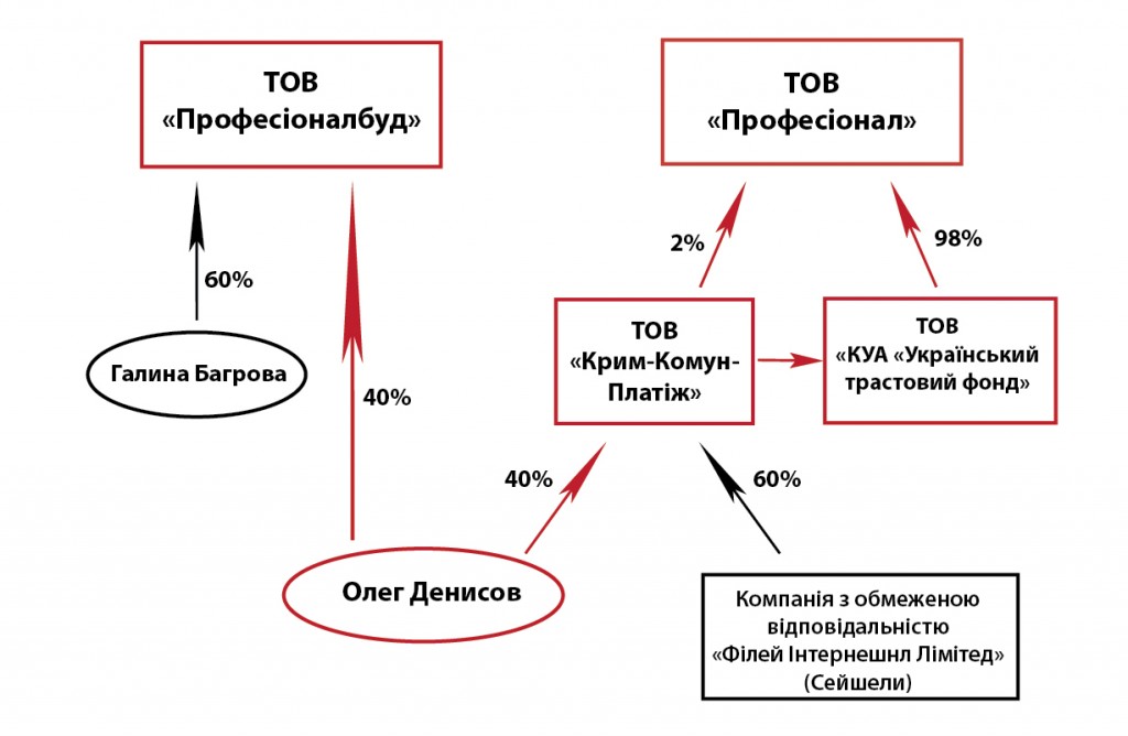 Наразі ТОВ «Професіонал» має двох засновників: ТОВ «Крим-Комун-Платіж» та його дочірнє ТОВ «Компанія з управління активами «Український трастовий фонд». «Крим-Комун-Платіж» належить уже згаданому вище Олегу Денисову та сейшельському офшору «Філей Інтернешнл Лімітед».