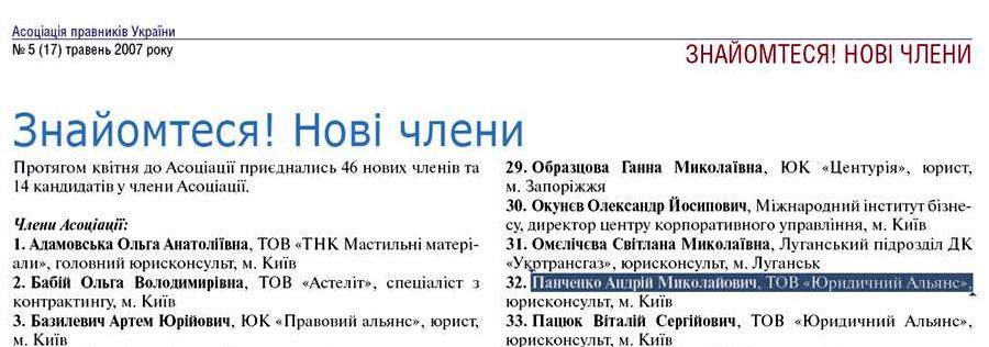 Засновником ТОВ «Юридичний альянс» є юрист Антон Зубков, відомий як керівник харківського осередку Асоціації протидії недобросовісній конкуренції.