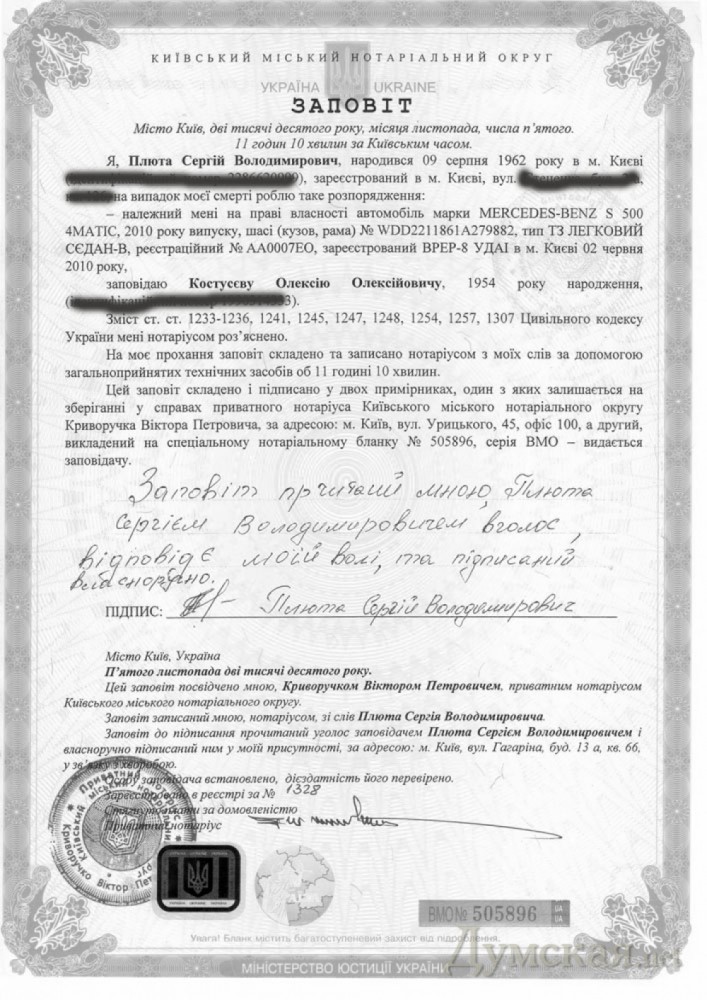 За місяць до смерті водій Костусєва заповів йому Mercedes-Benz S 500