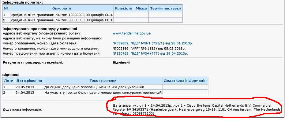 Відтак 24 квітня було акцептовано найбільш вигідну пропозицію «Cisco» – трирічний кредит у розмірі $15 млн «Укртрансгаз» отримав би під 8% річних. Український банк пропонував кредит удвічі дорожче.
