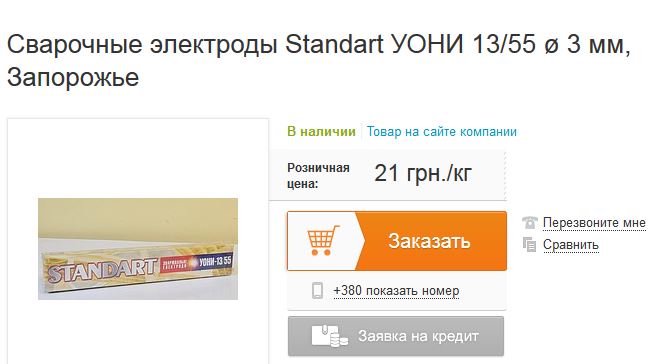 Електроди УОНИ 13/45 (13/55) Ø 3мм | 13,83 | 37038 |