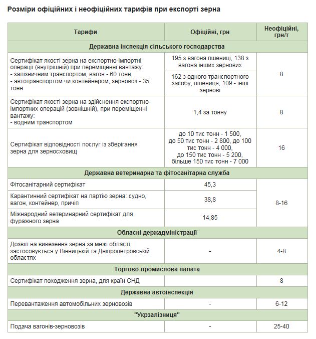 Видання склало список усіх державних інспекцій та відомств, які наживаються на доставці зерна до порту, та їх «тарифи».