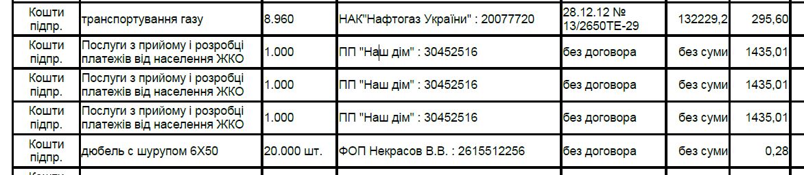 У опублікованих даних не вказано вартість угод між водоканалом і «Нашим домом». Відомо, що вартість однієї послуги без ПДВ становить 1 435 грн.