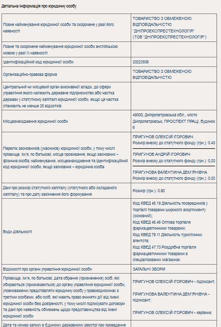 Дніпропетровське ТОВ «Дніпроекспрестехнологія» заснували Олексій, Андрій та Валентина Пригунови.