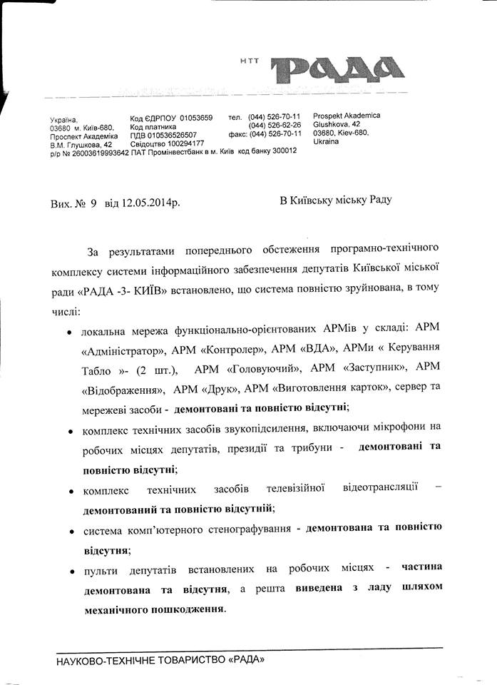 «І це не наша забаганка – це кошторис розробників. На превеликий жаль, систему “РАДА” виробляє тільки НТТ “Рада”. Замовити її у баби Дусі в підвалі на Подолі змоги немає», – пише Бондаренко.