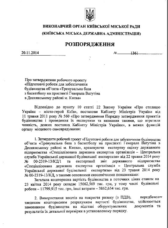 У Києві планують збудувати тренувальну баскетбольну базу на вул. Ватутіна (Деснянський район). Кошторисна вартість будівництва, розрахована станом на квітень поточного року, складає 15,66 млн грн. Розпорядження КМДА про затвердження проекту відповідних підготовчих робіт оприлюднене на сайті міськадміністрації.