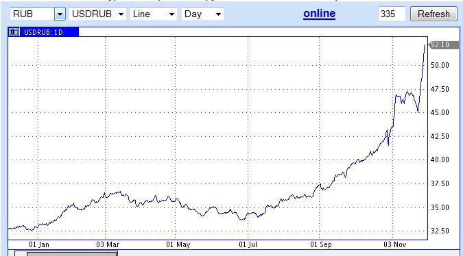 Сьогодні зранку на фоні здешевлення нафти Брент до 68 доларів за барель російський рубль встановив новий історичний рекорд 52 руб за долар.