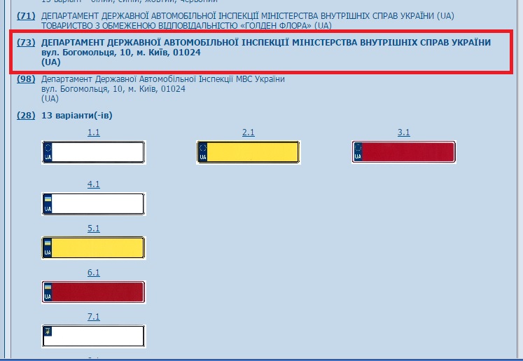 «14 жовтня цього року до Державної служби інтелектуальної власності співвласниками патенту подано заяву стосовно публікації в офіційному бюлетені «Промислова власність» та внесення до Державного реєстру патентів України на промислові зразки відомостей про передачу права власності на промисловий зразок «знак номерний транспортних засобів» від ТОВ «Голден Флора» до Департаменту ДАІ МВС України», – повідомив Департамент ДАІ.