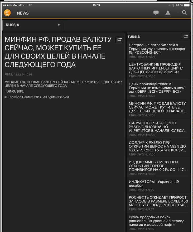 Уже в пятницу многие инвесторы были просто в шоке от происходящего и от тех цифр, которые видели на экранах мониторов. Ставки на денежном рынке говорят сами за себя — MosPrime «овернайт» повысилась на 7,5% до 27,30%, что стало историческим максимумом. Однодневная ставка по междилерскому РЕПО – на 5,8% до 25,54%. Ну и не менее пугающие цифры поступили уже от казначейства РФ, которое разместило 150 млрд. рублей на 10 дней под 38.3%, при этом спрос был почти в два раза больше, на 336 млрд. рублей. Как мы видим, продавать валюту или никто не хочет, или не кому, и ещё в голове висит один пугающий вопрос – почему вместо ЦБ на рынок вышел Минфин с продажей валюты, у нас что, кончились ЗВР и нет больше денег на интервенции? Почему президент просит поскрести по сусекам своих знакомых, владельцев компаний, чтобы помочь поддержать курс рубля? Что-то здесь не так. Очень похоже, что после Нового Года ситуация вновь начнёт резко ухудшаться и российская валюта вновь попадёт под серьёзное давление.