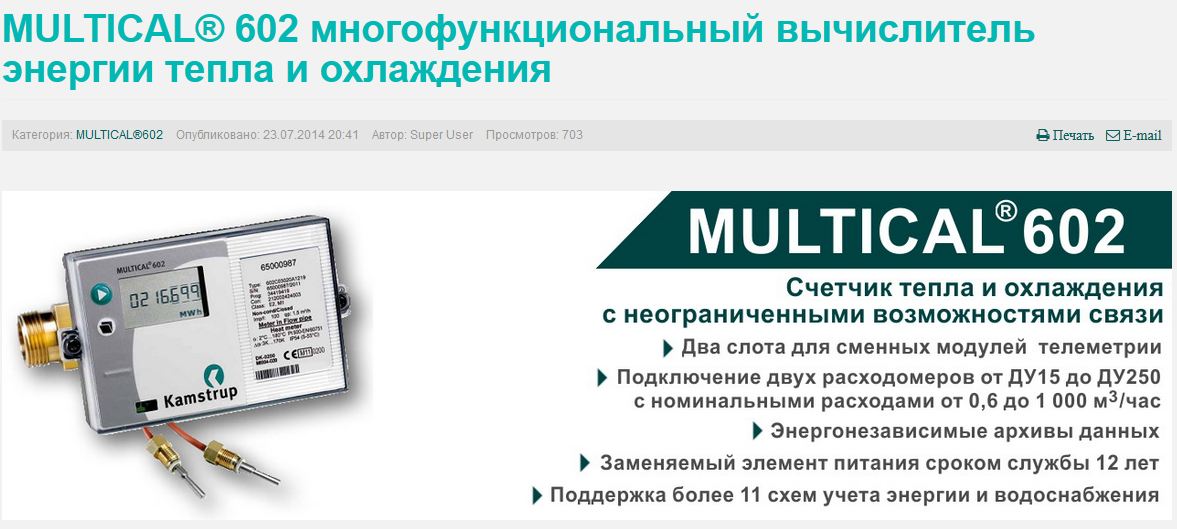 Прилад обліку теплової енергії ГВП | Multical UF 602 С-2-00-2-0D-8-9-56 з витратомірами Ultraflow 54 65-5-CHAG DN25 | 300 |