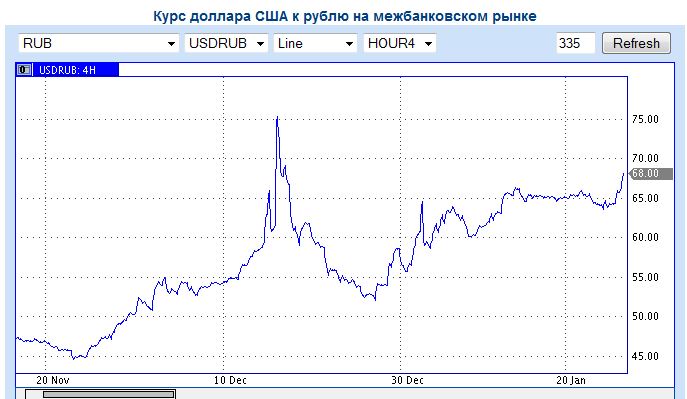 «Це повинно було зупинити різке знецінення рубля і приборкати інфляцію. Рубль короткочасно зміцнився по відношенню до долара, але з тих пір він продовжує дешевшати, досягнувши позначки близько 66 рублів за долар (станом на 26 січня 2015 року), у порівнянні з приблизно 35 [руб./$] рік тому», – йдеться в повідомленні.