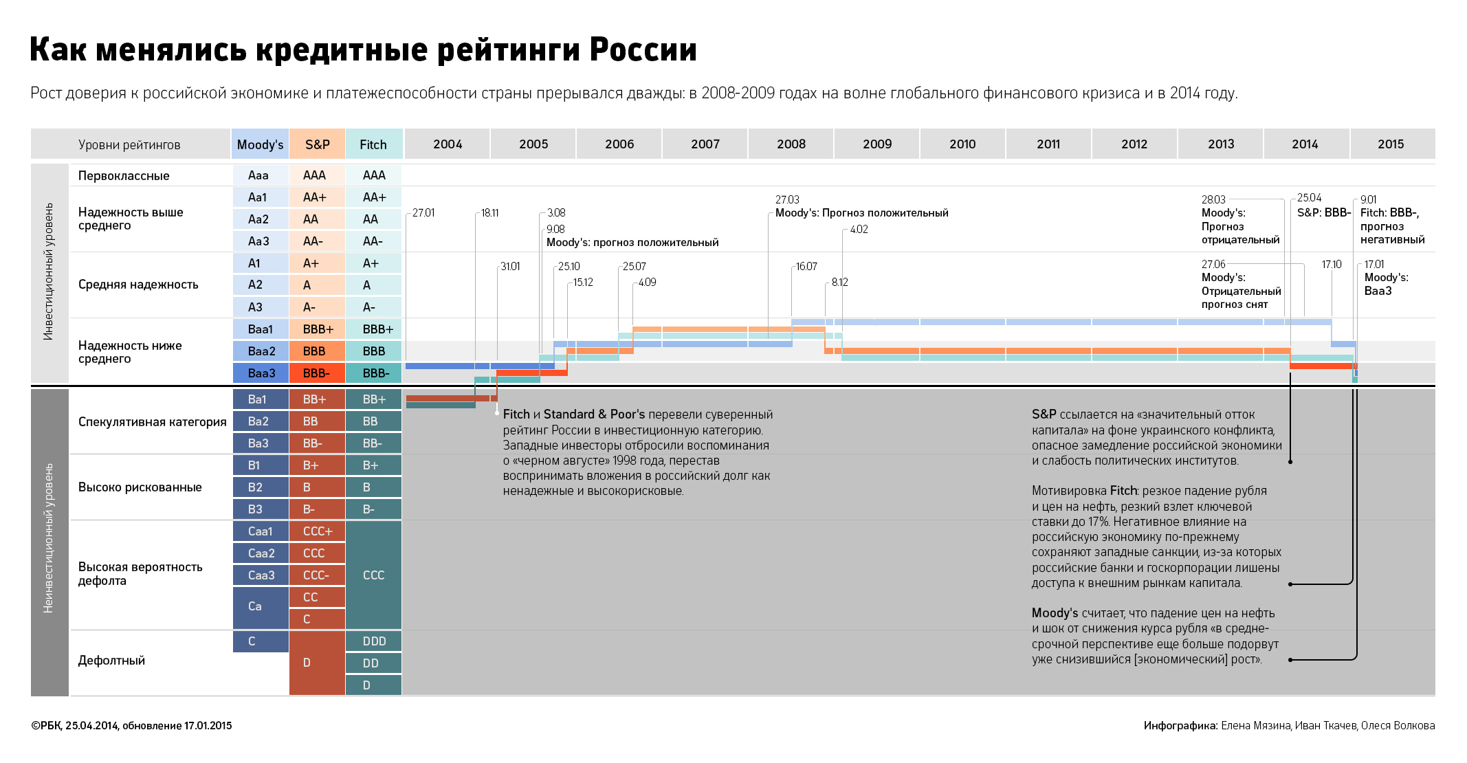 При цьому в агентстві вважають, що в Росії буде «приглушений прогнозоване зростання» на 0,5% щороку протягом 2015-2018 років. Наступний перегляд кредитного рейтингу країни намічений на 17 квітня 2015 року.