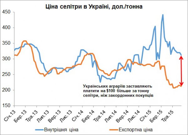 Наразі експортна ціна на аміачну селітру – найпопулярніший вид добрив серед аграріїв – в українських портах складає близько $200 за тонну, але на внутрішньому ринку в Україні її продають за понад $300. Надвисока ціна на українські добрива спричиняє їхній низький попит.