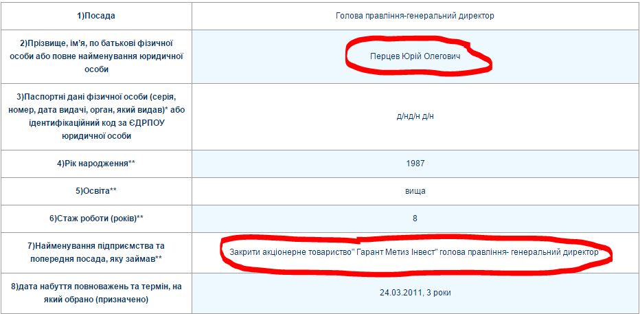 За даними «Smida», правління «Гарант Метиз Інвесту» раніше очолював Юрiй Олегович Перцев, який нині працює заступником директора ОГХК з комерційних питань.