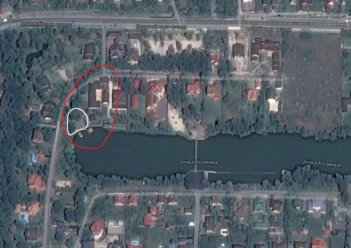 Маєток Стельмаха знаходиться на відстані менше кілометра від обійстя Петра Порошенка також на березі Козинки.