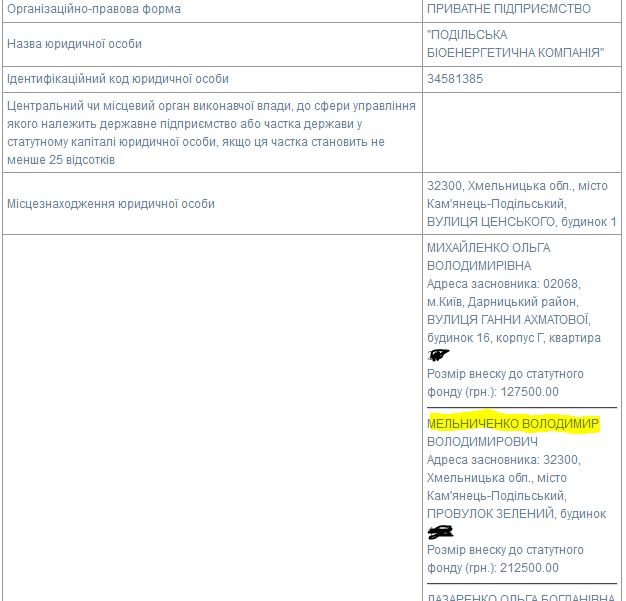 мельниченко** Володимир Мельниченко у грудні заявив, що нібито не має відношення до «Подільскої біоенергетичної компанії».