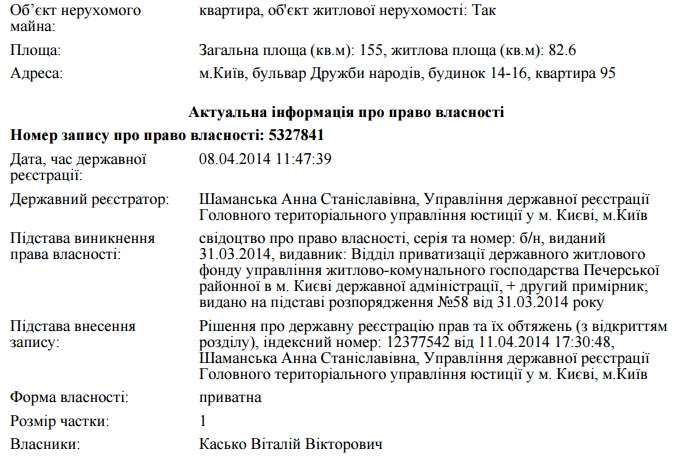 Генпрокурор Віктор Шокін добився арешту квартири свого екс-заступника Віталія Каська на бульварі Дружби народів, 14-16 у Києві. Про це свідчить ухвала Печерського райсуду м.Києва від 22 березня.