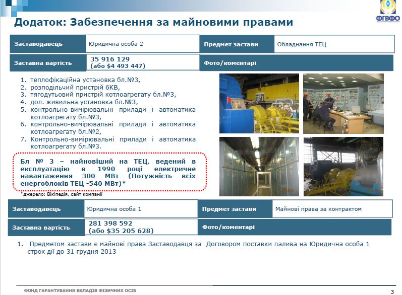 Забезпеченням по кредиту виступає обладнання найновішого на ТЕЦ блоку №3 (теплофікаційна установка бл., розподільчий пристрій , тягодутьовий пристрій котлоагрегату бл., дол. живильна установка , контрольно-вимірювальні прилади і автоматика котлоагрегату , контрольно-вимірювальні прилади і автоматика котлоагрегату). Потужність цього блоку становить 300 МВт, тоді як потужність усіх інших блоків складає 240 МВт.