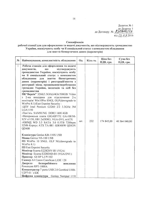 До кінця року поставлять робочі станції для оформлення і видачі в тому числі й біометричних паспортів та реєстрації за місцем проживання, для відділів адресно-довідкової роботи, а також зовнішні цифрові клавіатури для введення ПІН-кодів (перелік із цінами нижче). У вартість входять монтаж і пусконалагодження.