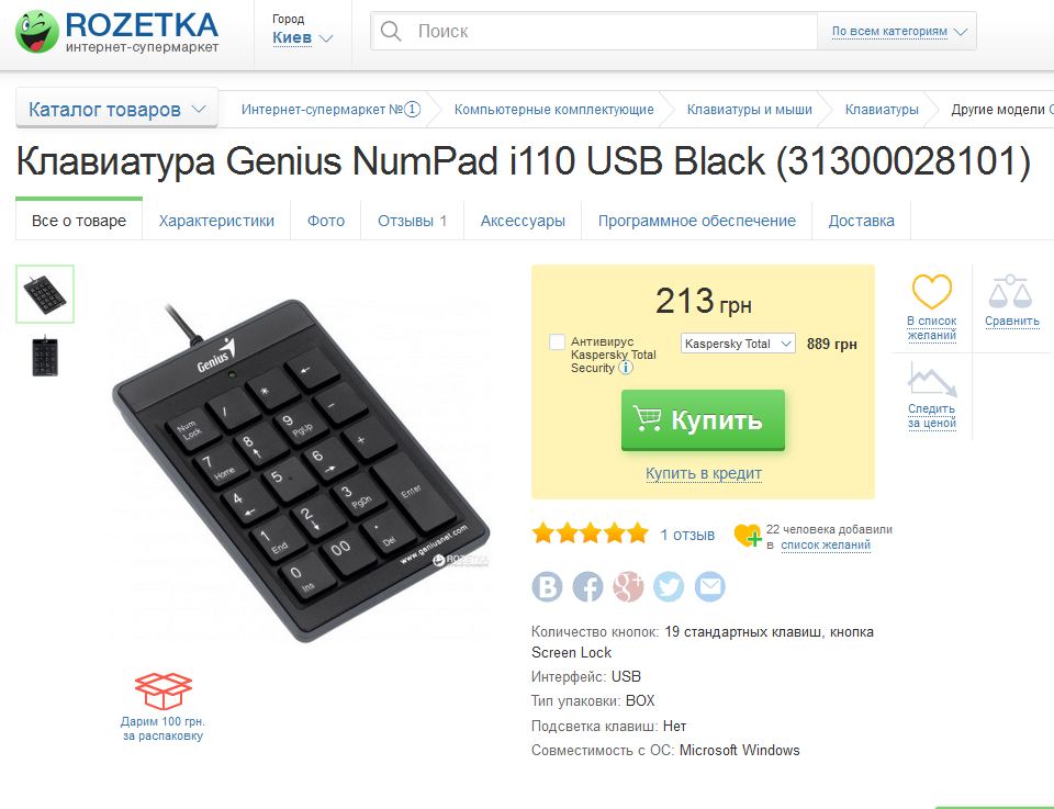 Цифрова клавіатура зовнішня для введення ПІН-кодів Genius Numpad i110 USB Slim | 735 | 367,02 | 269 759,34 |