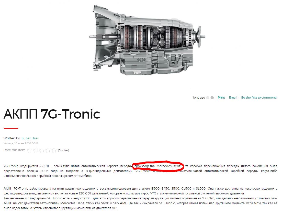 У технічному завданні немає вказівок на виробника, але автоматична коробка передач 7G-tronic – це торгова марка компанії «Mercedes-Benz».