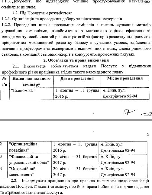 Оплачується навчання для 12 працівників «Нафтогазу». Їх прізвища та посади не оприлюднені. Заняття мають проходити по п’ятницям, суботам, неділям.
