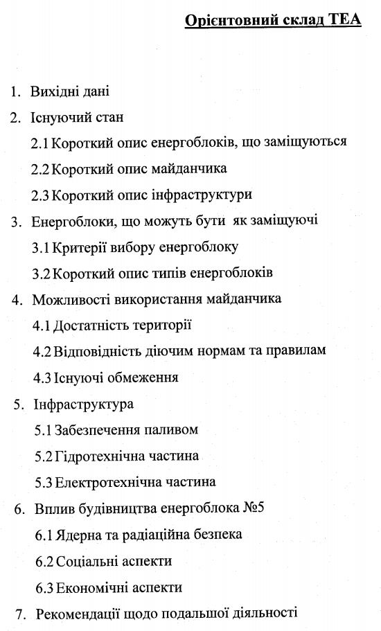 - обґрунтування необхідності будівництва блоку №5 покоління ІІІ+ потужністю 1000-1400 МВт із проектним строком експлуатації 60 років;