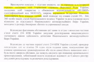 Перший заступник керівника Апарату ВР-керуючий справами вважає, що злочин було вчинено «за сприяння та в інтересах» невказаних Боднаром «окремих посадових осіб Управління справами».