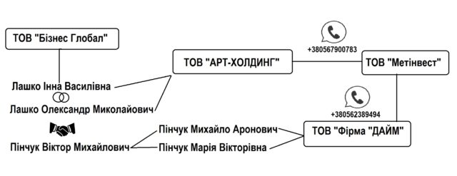 «Арт-Холдинг» має спільний номер телефону 0567900783 із ТОВ «Метінвест» росіянина Михайла Щеголевського. Останнє у свою чергу використовує номер 0562389494 разом із ТОВ «Фірма «Дайм» Михайла та Марії Пінчуків – батька та доньки Віктора Пінчука.