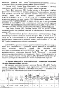 У документі за підписом народного депутата Андрія Журжія («Самопоміч») повідомляється про провадження, внесене Національним антикорупційним бюро до ЄРДР за №52016000000000318 по ч. 2 ст. 364 КК України (зловживання службовим становищем).