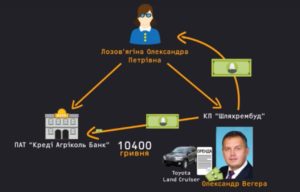 В листопаді 2012 року Олександра Лозов’ягіна уклала з ПАТ «Креді Агріколь Банк» кредитний договір на придбання Toyota Land Cruiser вартістю 742 тис грн. Через два дні Лозов’ягіна уклала договір з директором «Шляхрембуд» Олександром Вегерою, за яким віддала авто в оренду. Щомісячну оренду плату в 10,4 тис грн. комунальне підприємство виплачує на поточний рахунок Лозов’ягіної в «Креді Агріколь Банк». Крім того, КП компенсує їй всі витрати, які пов’язані зі страхуванням, ремонтом, заміною запчастин.