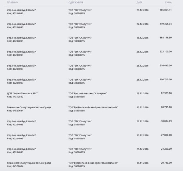 Так, у 2016-2017 роках управління інфраструктури та капітального будівництва Славутицької міськради замовило «БІК «Славутич» ремонтні роботи та розробки проектно-кошторисної документації щонайменше на 2,32 млн грн. За даними «E-data», фірма регулярно отримувала кошти від управління інфраструктури та капбудівництва, а також виконкому Славутицької міськради.