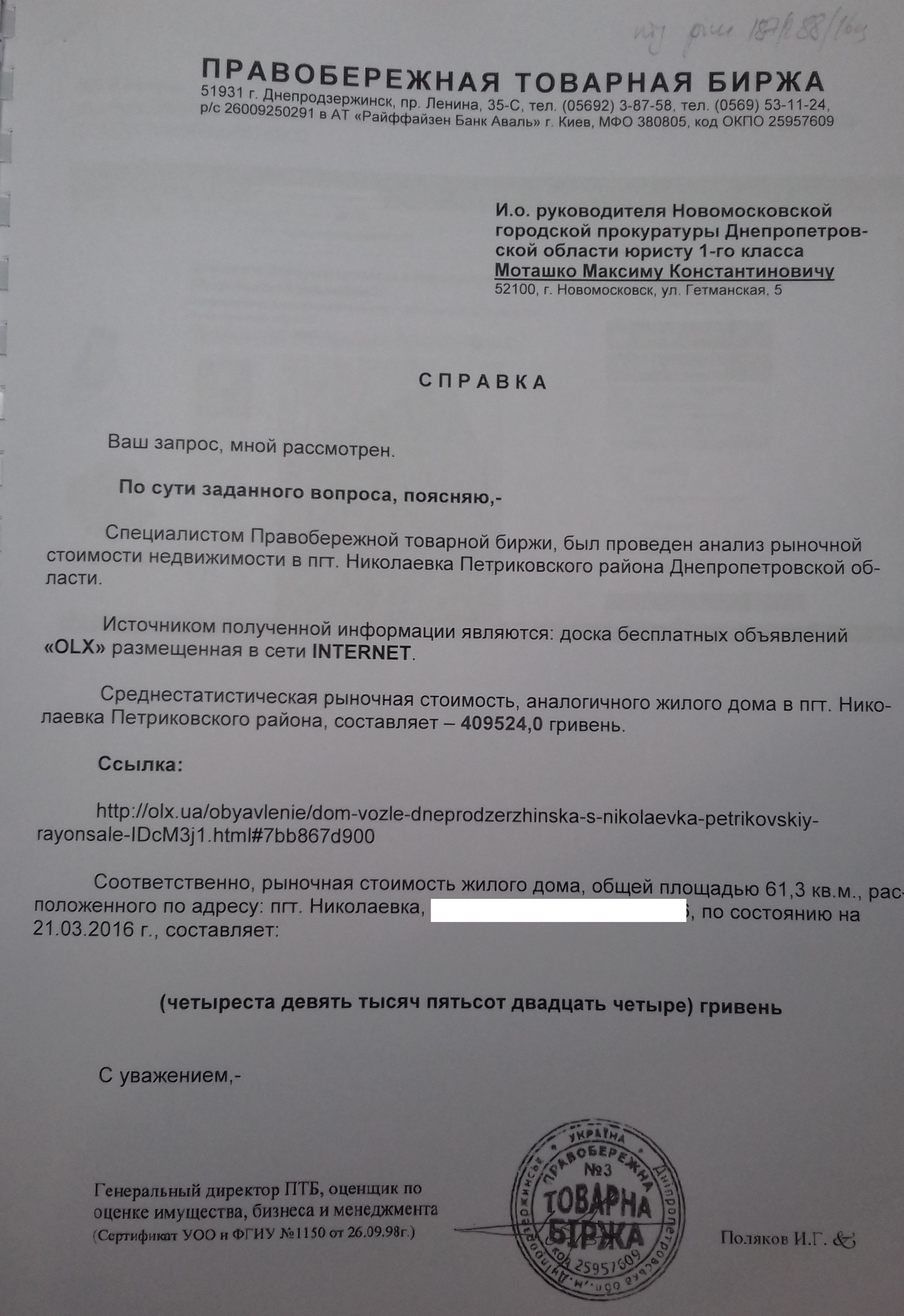Для порівняння, ось інші висновки оцінювачів з тієї ж Дніпропетровської області стосовно майна, по якому прокуратура судилася: