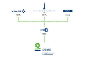 «LTD Novadeal» належить іншому кіпрському офшору «Dredging International (Cyprus) Ltd», а той у свою чергу – фірмі «Tideway BV» (Нідерланди). Усі три входять у згадану бельгійську групу «DEME». Остання через «CFE» належить «Ackermans & van Haaren» (60,4%) та «Vinci» (12,1%), решта акцій знаходить в публічному обігу. Від переможця договір підписав Жан-П’єр Десманет – заступник регіонального директора «DEME».