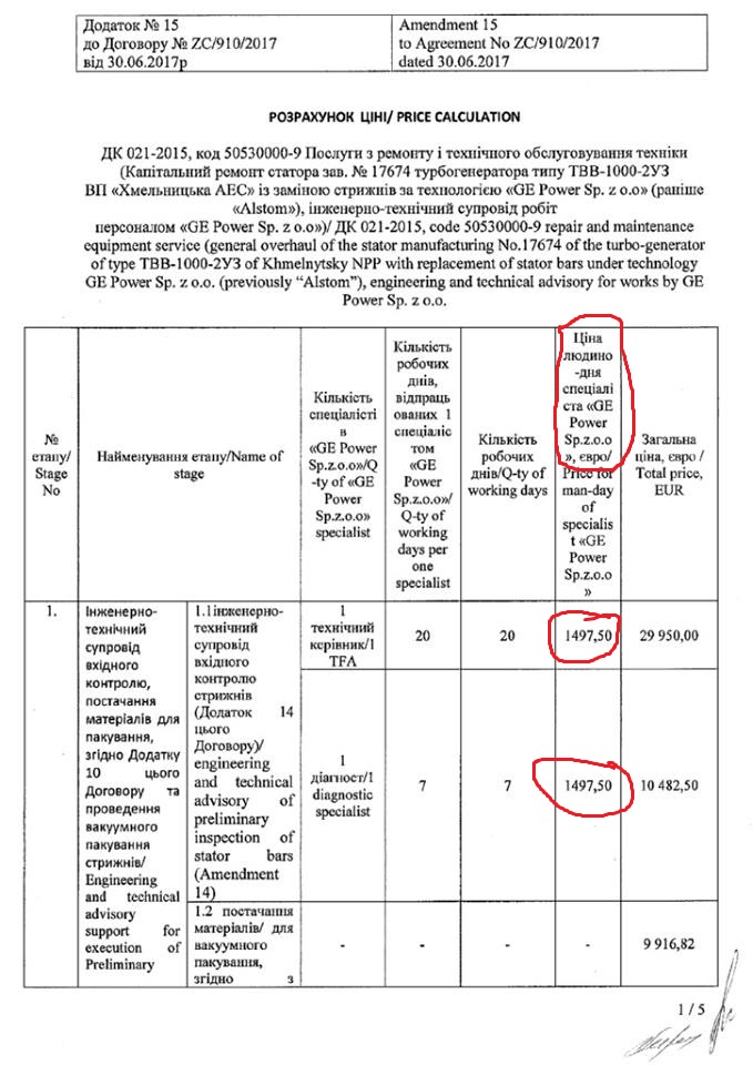 До кінця 2018 року на Хмельницькій АЕС виконають капітальний ремонт резервного статора турбогенератора ТВВ-1000-2УЗ виробництва ВАТ «Силові машини» (РФ) із заміною стрижнів за технологією «GE Power Sp. z o.o» («Alstom») та інженерно-технічним супроводом. Денна ставка всіх спеціалістів підрядника становить 1 498 євро.