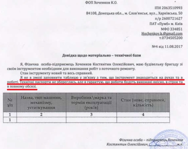 Незважаючи на порушення тендерних вимог з ФОП Хоченков Костянтин Олексійович було укладено договір на 875 тисяч гривень.