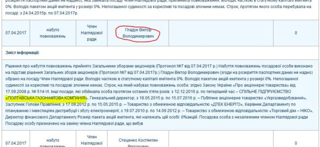 Віктор Володимирович Гладун очолив «Полтавську газонафтову компанію» у грудні 2016 року, коли «приватівський» менеджмент почали усувати з керівництва «JKX».