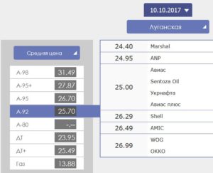 За даними ресурсу «Все АЗС», бензина А-92 на заправках Луганської області станом на 10 жовтня коштував від 23,95 до 26,99 грн/л на фірмових заправках «ОККО» та «ВОГ». У жодного роздрібного постачальника не було 27,80 грн/л.