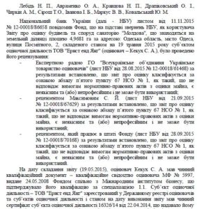 Чи тим, що звіт «Ернст енд Янгу» по оцінці санаторію «Молдова» Нацбанку в 2015 році (див. протокол №83 та скріншот) теж отримав негативну рецензію?