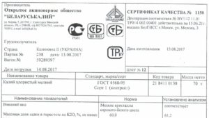 Калій хлористий з поставкою в Красноград Харківської області на умовах DDP замовлено по 10 980 грн/т.
