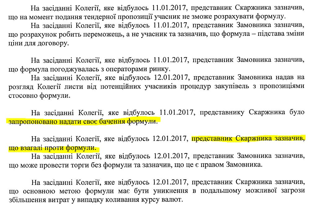 Окрім цього представник скаржника на засіданні колегії заявив, що він «взагалі проти формули» (скріншот з рішення АМКУ):