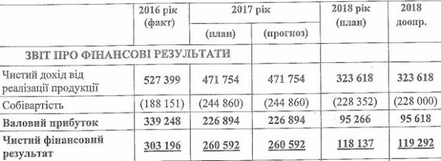 В фінплані на цей рік також заплановано зниження на 41% чистого доходу від реалізації продукції – до 323,62 млн грн. При цьому собівартість реалізованої продукції зростає на 17%.
